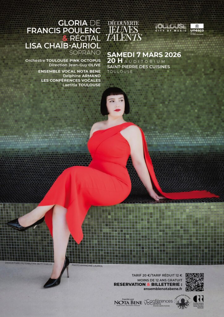 Après l’ouverture de la Flûte Enchantée de W. A. Mozart, interprétée par l’Orchestre Toulouse Pink Octopus sous la baguette de Jean-Guy OLIVE, Lisa CHAÏB-AURIOL donnera un récital d’airs d’Opéra. L’Ensemble vocal Nota Bene, dirigé par Delphine Armand et les Conférences Vocales, dirigées par Laetitia TOULOUSE les rejoindront ensuite pour interpréter le Gloria de Francis POULENC.